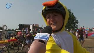 Geen enkel thema was te gek voor de 40 deelnemers. Van de familie Flodder tot thema's rondom 40 jaar Zeewolde, iedereen verscheen aan de start om te proberen met een droog pak de bel aan het einde van de baan te bereiken. De ene deelnemer haalde het wel, de andere niet.