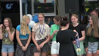 De meisjes onder 12 en onder 14 jaar werden gehuldigd voor hun prestaties in de zaal.